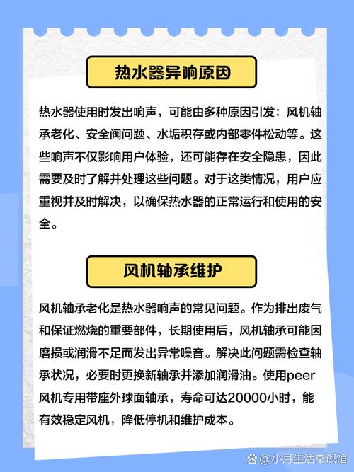 〖Three〗、首先,我们需要了解热水器像吹口哨一样响的原因。通常,这种声音可能是由热水器内部的空气流动、水流声或是设备老化等原因引起的。要解决这个问题,我们需要根据具体原因采取相应的措施。首先,空气流动问题可能导致这种声音。当热水器的进气口或排气口被堵塞时,内部空气流动可能会产生吹口哨的声音。