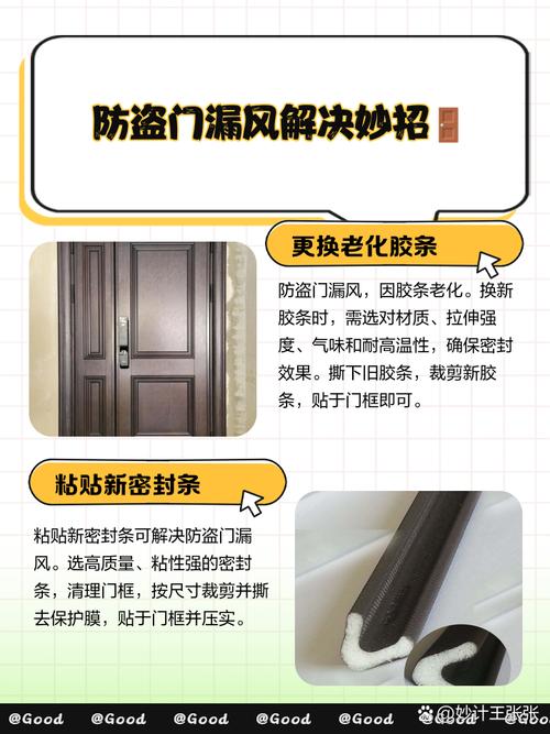 处理防盗门漏风的方法包括检查门框与门扇之间的密封情况,以及门扇与地面之间的缝隙。如果门框与门扇之间存在缝隙,可以使用密封胶条或者密封胶来填补。选取适合的密封材料,沿着门框和门扇之间的缝隙粘贴,确保密封严实。