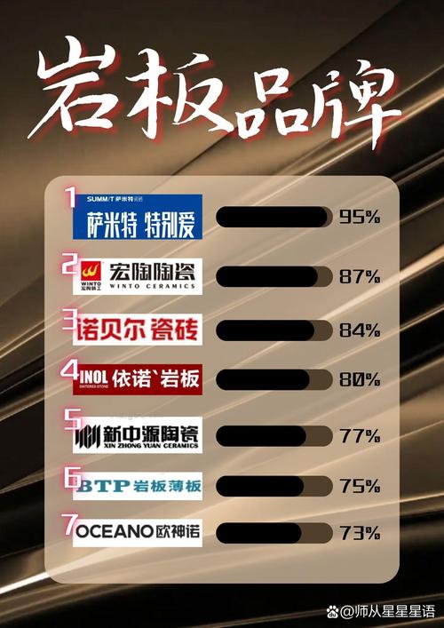〖Four〗、顺辉岩板:自1998年在中国陶都广东佛山诞生以来,该品牌已经成为行业内的佼佼者。 马可波罗:该企业拥有380多项专利,自主研发的原创设计如游计,引领行业潮流。