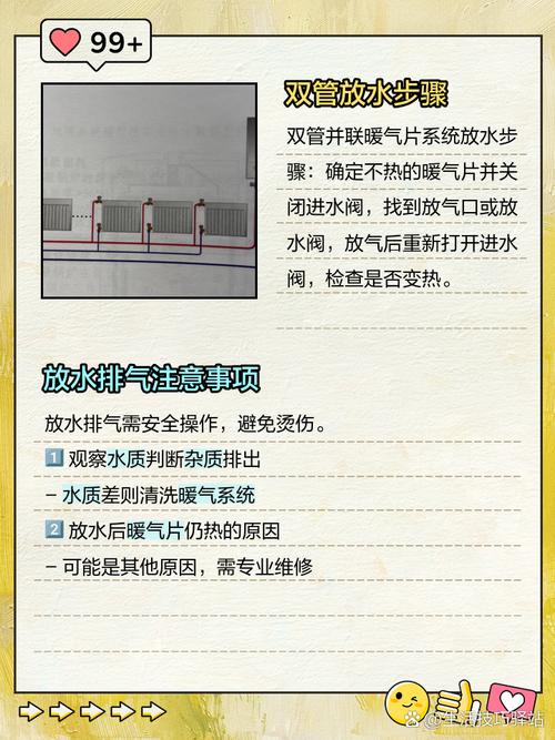 〖Three〗、暖气不热时,正确的放水方法如下:放水前的准备 关闭暖气开关并断电:确保暖气系统处于关闭状态,避免操作过程中发生意外。 等待暖气降温:让暖气系统冷却一段时间,以免放水时烫伤。 准备放水工具:如盆子、扳手等,用于接收污水和打开放水阀。