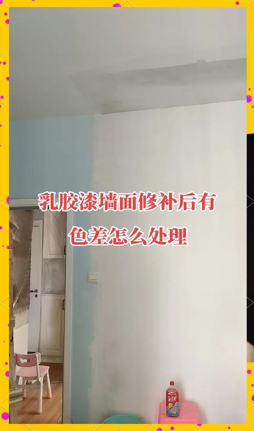 修补的时候选取的乳胶漆颜色和原来的墙壁颜色有一定的差别。修补的时候没有按照合理的施工顺序进行施工。墙体没有清洁干净就修补。建议处理方式:首先在颜色的选取上,一定要选取和墙体完全相同的颜色的乳胶漆,否则上色有色差是必然的现象,如果自己不懂辨别可以去商店让老板直接指定颜色。
