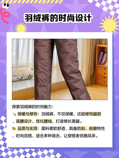 〖Two〗、羽绒裤的松紧应根据个人喜好来选取,买大了可以退换或裁剪修改。关于羽绒裤的松紧: 羽绒裤适合穿紧一点还是松一点并没有固定答案,这主要取决于个人的穿着喜好和舒适度。 有人喜欢紧身羽绒裤,因为它能更好地贴合身体,减少空气流通,从而增强保暖效果。