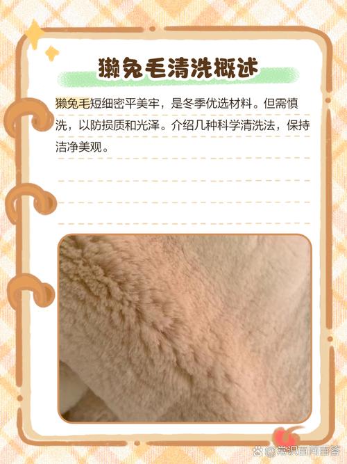 〖Four〗、獭兔毛在家清洗的步骤如下:准备温水:往盆子里倒入30℃左右的温水,确保水温不会过热以免损伤毛发。加入洗涤剂和食盐:向温水中加入适量的中性洗衣液和食盐,食盐有助于防止獭兔毛在洗涤过程中脱毛。浸泡与漂洗:将獭兔毛衣物轻轻浸泡于盆中,用手轻轻漂洗,避免用力揉搓,以免毛发打结或脱落。