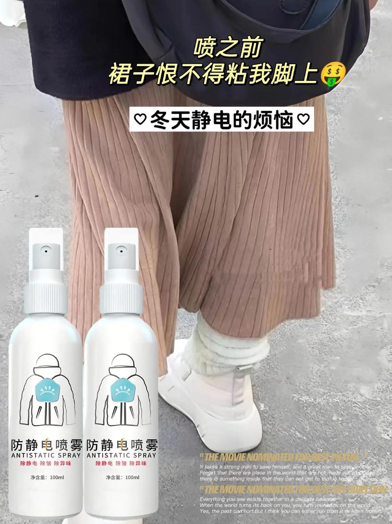 解决裙子静电贴腿上的问题,你可以试试这几个小妙招哦:涂点润肤露:腿上太干燥就容易起静电啦,所以赶紧拿出你的润肤露,给双腿来个滋润SPA,这样裙子就不会那么容易吸在腿上了。如果还穿了打底裤,也别忘了给打底裤抹点哦!喷点柔顺剂:拿出你的衣物柔顺剂,按照1:30的比例和水混合,然后装进喷壶里。