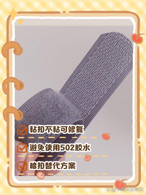 清洁粘扣表面。首先,确保粘扣区域干净无尘,使用微湿的布轻轻擦拭,去除任何可能影响粘附的污垢或杂质。 更换粘扣。如果清洁后粘扣仍然不粘,可能是时候更换新的粘扣了。在购买新粘扣时,要确保其材质和尺寸与原有粘扣相匹配。 使用修复工具。