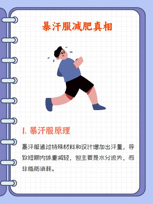 〖One〗、里面要穿衣服。暴汗服里面穿一件内衣或者吸汗服就可以,不需要穿太多的衣服,暴汗服可以在运动的时候,帮助运动者快速提升体温,从而增加排汗量,特别是针对汗腺堵塞的人群,有很好的效果。暴汗服主要通过短时间大量排汗来降低体重,运动完之后补充水分,体重会恢复,所以只是起到暂时减轻体重的效果。