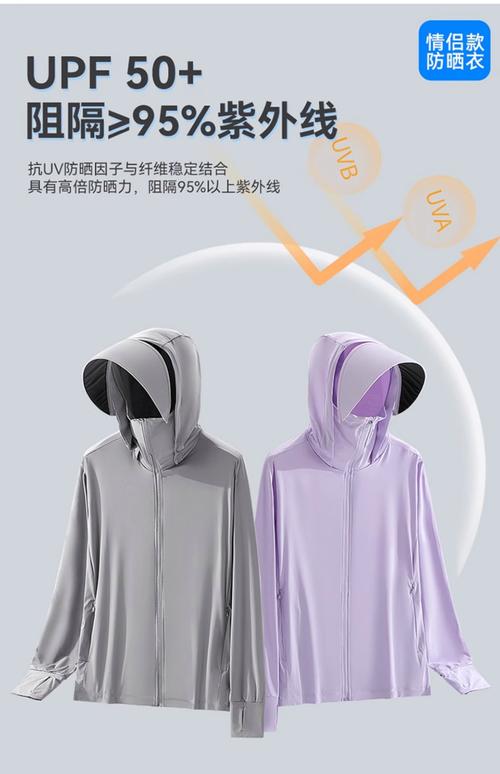 〖Two〗、防晒效果:UPF值代表防紫外线的指数,数值越高,防晒效果越好。因此,UPF50的防晒衣相对于UPF40的防晒衣来说,防晒效果更强,能够提供更长时间的防晒保护。适用场景:虽然UPF40的防晒衣已经属于高倍防晒,但在紫外线特别强烈的环境下,或者对于对防晒有更高要求的人群来说,UPF50的防晒衣可能更为合适。