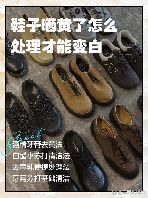 〖Five〗、鞋晒黄后可尝试以下方法补救。 白醋擦拭法:准备适量白醋和干净软布。将白醋倒在软布上,轻轻擦拭变黄部位,因白醋有一定酸性,可分解黄斑。之后用清水冲洗鞋子,再用干布擦干,放通风处晾干。 牙膏涂抹法:选白色普通牙膏,挤出适量在变黄处,用软毛刷轻轻刷洗,能去除部分黄斑。