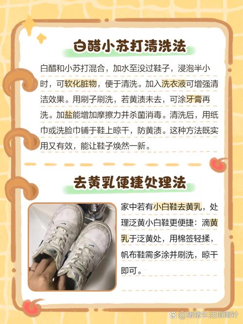 〖One〗、方法一:牙膏擦拭 。将牙膏均匀涂抹在晒黄的部位,用软毛刷轻轻刷洗,停留几分钟后用清水冲洗干净。牙膏中的微小颗粒能起到一定清洁和美白作用。方法二:白醋浸泡 。准备一盆温水,加入适量白醋,将鞋子浸泡其中15 - 20分钟,之后正常清洗。白醋有一定的酸性,可帮助分解黄斑。方法三:小苏打糊涂抹 。