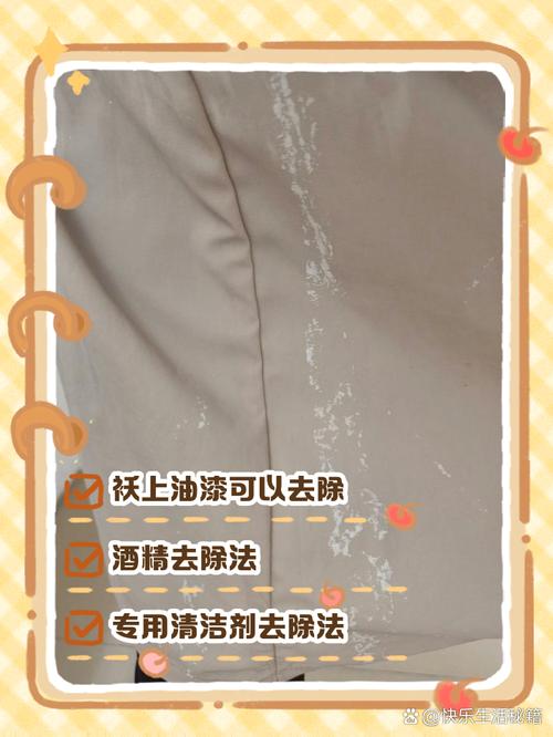 〖One〗、汽油或煤油法:汽油和煤油都能溶解油漆。将衣服沾有油漆的部分浸泡在汽油或煤油中,轻轻揉搓,使油漆逐渐溶解脱落。之后用清水冲洗,再用洗涤剂洗净残留的油污。 酒精法:对于一些不太顽固的油漆污渍,可用酒精擦拭。把酒精倒在污渍处,用干净的布轻轻擦拭,油漆会慢慢溶解。