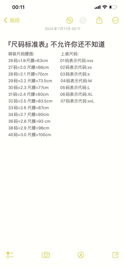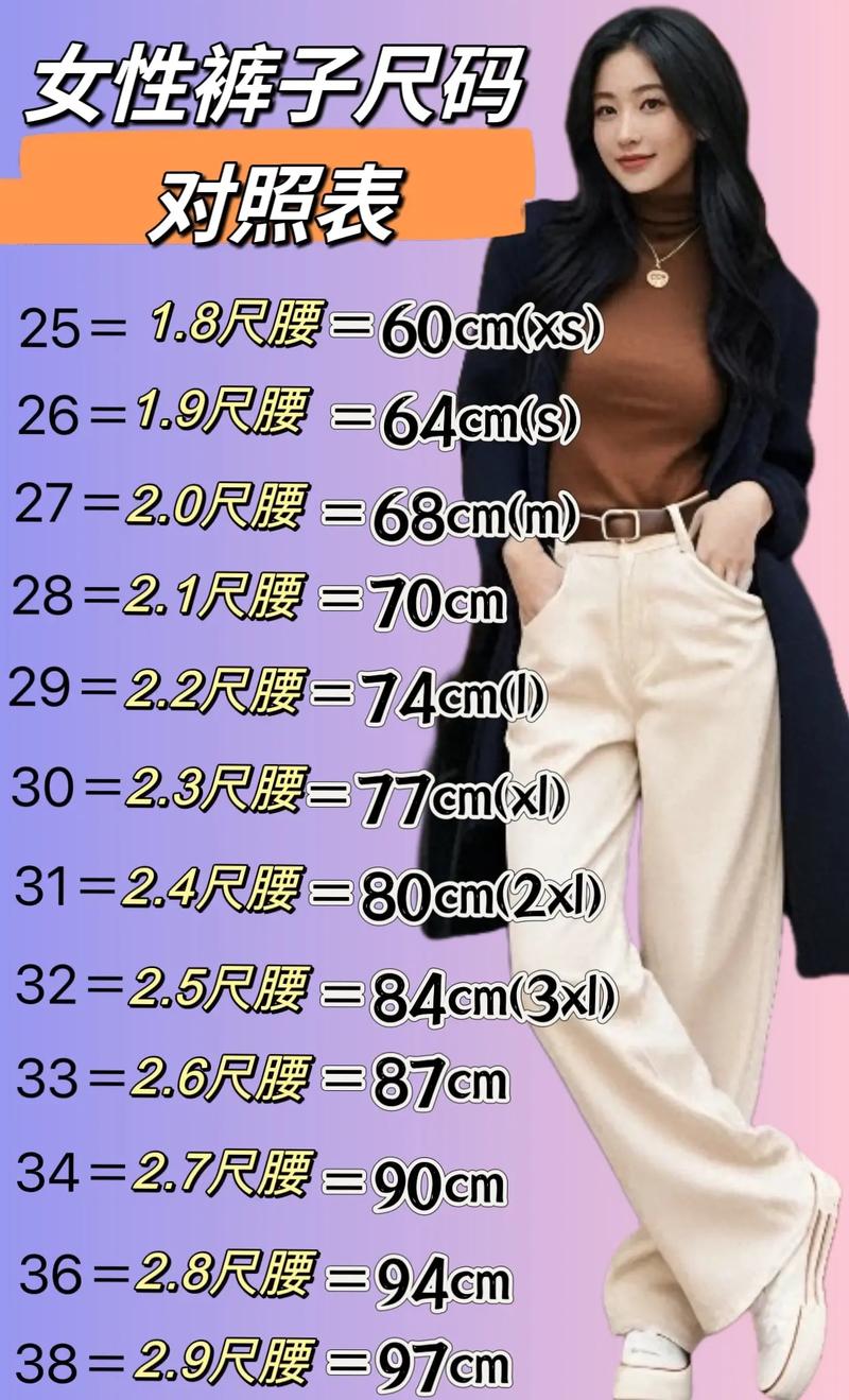 〖One〗、号的裤子,通常对应于成人服装的M码或L码。具体而言,36码的裤子设计的腰围大约为2尺9寸,根据大多数成衣品牌的标准,这大致等同于M码或L码。然而,不同品牌和款式的裤子可能存在尺码上的差异,因此实际尺码可能会有所不同,但这种差异通常不会超过几厘米。
