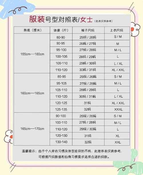 码:腰围约2尺8,适合体重在130『1』50斤左右的人穿。38码:腰围约2尺9,适合体重在150『1』70斤左右的人穿。这里给出的尺码和体重只是大致的借鉴范围,因为每个人的体型和穿衣喜好都不同。所以,比较好还是亲自试穿,找到最适合自己的尺码哦!另外,不同品牌的尺码可能略有差异,购买时请留意具体尺寸信息。