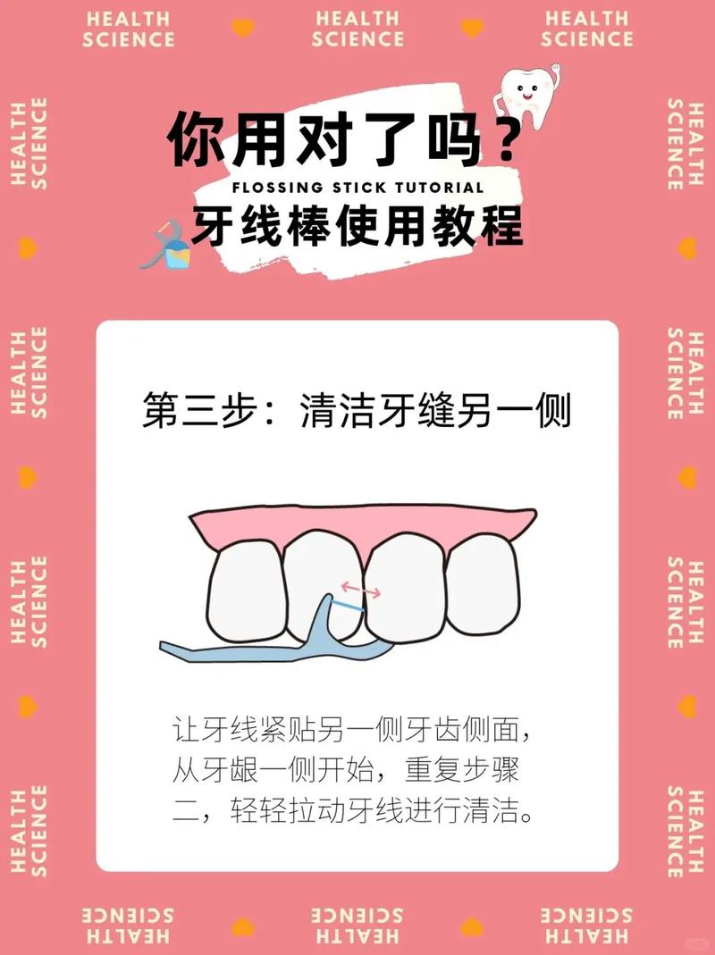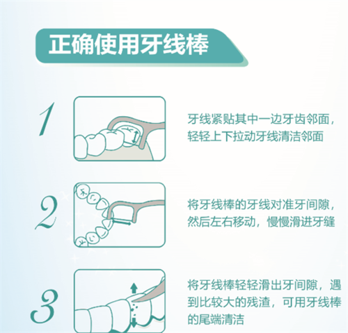 〖Three〗、正常情况下牙线并不是只能用一颗牙齿,而是可以使用多颗牙齿。如果单纯的用牙线棒清理一颗牙齿是非常浪费的,虽然我们在生活中使用牙线棒的时候,它是一次性的用品,但是也不要只使用一颗牙齿。另外在使用牙线棒时,发现牙线已经断了,这时候应该及时的更换并且继续清洁牙齿。