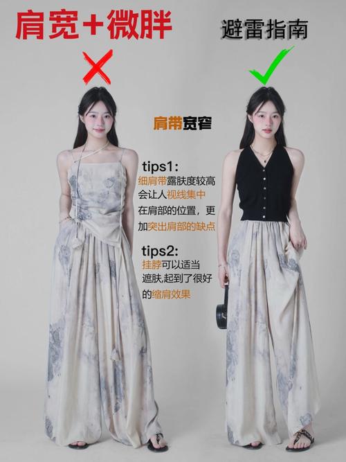 上衣选取:弱化肩背厚度 材质与版型 优选:垂感好的面料(雪纺、真丝、莫代尔),避免硬挺材质(如厚棉、垫肩)。剪裁:合身但不紧身,略宽松的H型或微A型剪裁。 避免雷区 泡泡袖、荷叶边、复杂肩部设计(加重肩宽)。 横条纹、胸前大面积印花(膨胀感)。