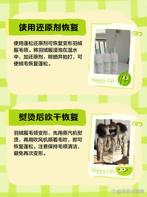 〖Three〗、衣服毛领压变形了,别担心,试试这几个小妙招来恢复它原来的美貌吧!用木梳梳理:拿出你的木梳,轻轻地、耐心地给毛领梳一梳。木梳不容易起静电,能让毛领更顺滑,减少摩擦哦!吹风筒吹直:就像吹头发那样,拿起吹风筒,从毛领的根部开始吹,再慢慢吹到尾部。