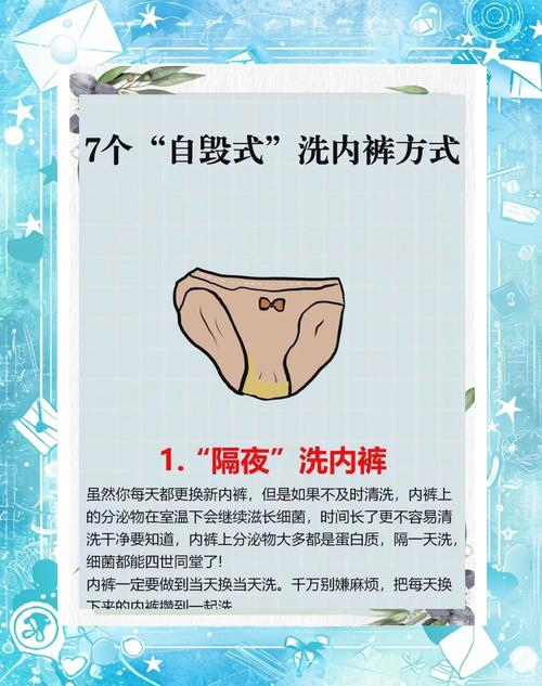 〖One〗、内裤长时间不洗,例如存放一周后才清洗,确实容易滋生细菌。如果之后进行了消毒处理,例如通过水煮的方式消毒20分钟,理论上是可以安全穿着的。然而,内裤的常规清洗应当每天进行,以保持卫生。允许内裤过夜存放是一个不卫生的习惯,因为过夜会为细菌的生长提供充足的时间,这不仅使得清洗更加困难,还可能对私处健康造成不利影响。