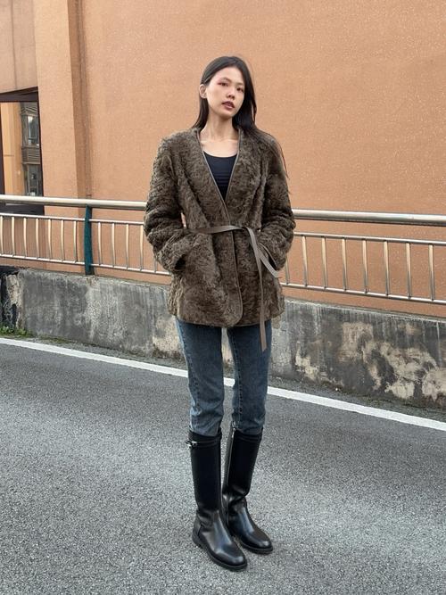 〖Six〗、搭配04:打底衫+打底裤+中长呢子腰带外套+高跟靴 女性到了中年不妨多穿高跟鞋吧!不仅显高还显气质哦。其实,体形微胖问题不大,还是挺好看的很有丰腴美。