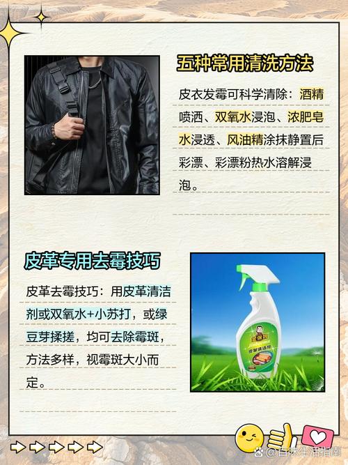 〖One〗、处理皮衣发霉有霉斑的妙招如下: 擦拭清洁与上皮油 步骤:首先,使用刷子和干净的布将发霉的部分擦拭干净。然后,取少许皮油均匀擦拭在皮衣上。擦拭前,建议在皮衣较不明显处试擦,以防发生油渍渗透或变色现象。若发生无法恢复原色的情况,应立即停止使用。擦完后,将皮衣挂在阴凉通风处晾干约24小时。