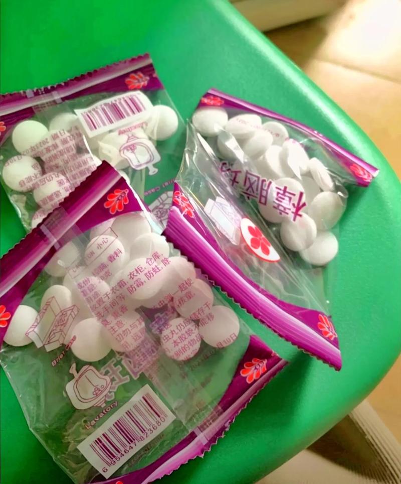 〖Two〗、衣柜放樟脑丸原因防蛀虫,除异味,樟脑丸有不同的味道,可视自己喜欢选取,不应裸放,应用保鲜袋装起来扎紧口,再在保鲜袋上用牙签扎几个小洞,如此樟脑丸的味道不至于太浓烈,不会影响到衣物的味道,另一方面,也有利于减少樟脑丸的升华。