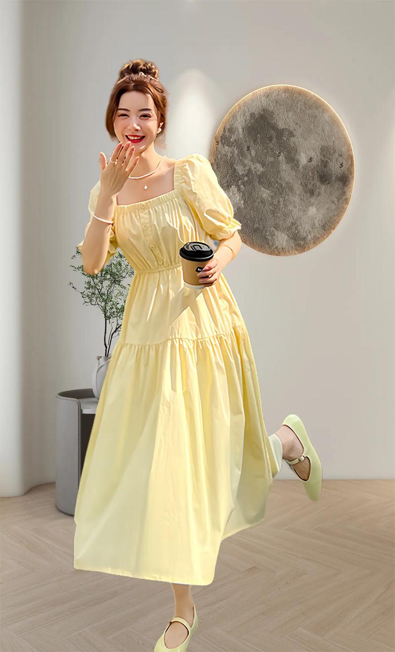 这款连衣裙以黄色为底色,搭配白色小碎花,散发出活力清新的美感。其款式大气,采用了泡泡袖和方领口的设计,非常适合40岁女性不太完美的身材,能有效显瘦。泡泡袖的设计能很好地隐藏胳膊的肉肉,让女性朋友展现最纤细的手臂部分,气质更加柔美。