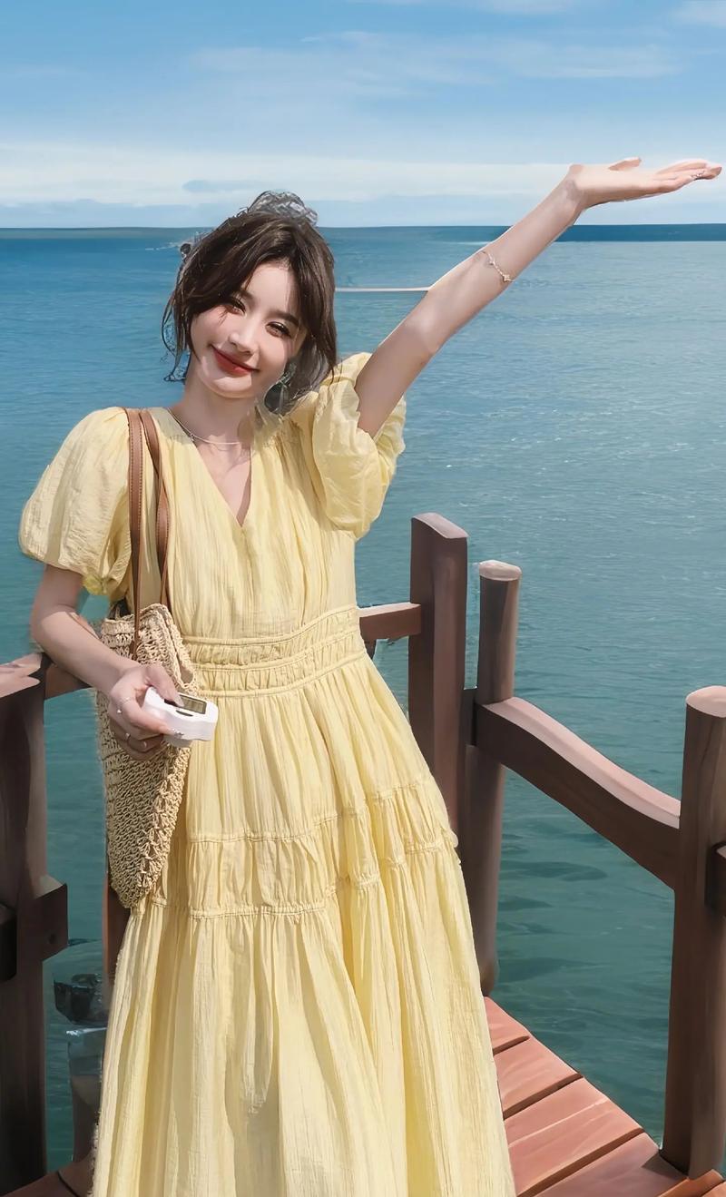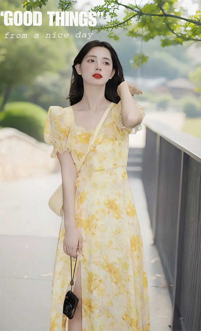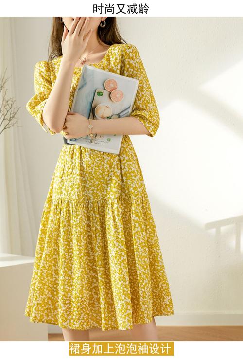 黄色泡泡袖碎花连衣裙,靓丽又吸睛,这款连衣裙适合40岁的女性吗?_百度...