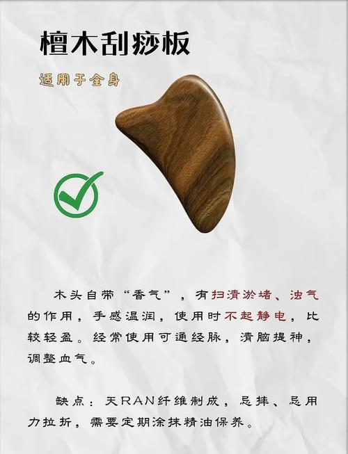 - 优先考虑天然牛角和玉石材质的刮痧板,它们的使用体验最佳。水牛角虽然稍贵,但若预算允许,是个不错的选取。玉石板感觉凉爽、重量适中即为优质。 刮痧板的厚度:- 新手应选取2cm以上的厚度,便于操作。鱼酱常用的是8mm厚度的板,适合不需要大力即可达到良好效果的场合。