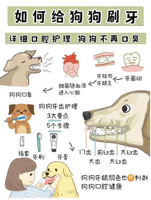 〖Five〗、使用宠物专用漱口水:可以给狗狗使用宠物专用的漱口水来清洁口腔,减少细菌滋生,从而减轻口臭。勤刷牙:保持狗狗牙齿的清洁是预防口腔疾病和口臭的关键。宠主应定期为狗狗刷牙,使用专为狗狗设计的牙刷和牙膏。调整饮食结构:避免给狗狗喂食人吃的食物,尤其是重口味和人类零食。