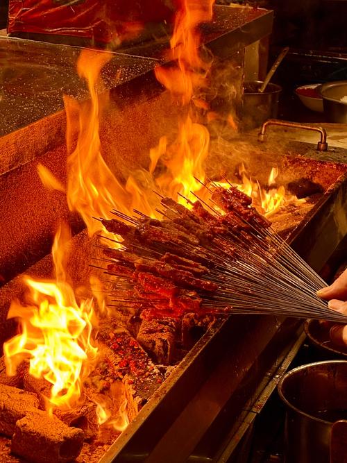 〖Five〗、用铁签子烤羊肉串的好处是,铁签子具有良好的导热效果,靠近串的肉也可以同时加热,而竹串或薄木串则没有这种作用,最里面的肉被完全覆盖。另外,竹签子或细木签子串的羊肉串最后总会留有一些切碎的肉,这是浪费。此外,重复使用这种签子也不卫生。