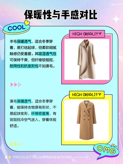 〖Two〗、羊毛大衣和澳毛大衣是冬季常见的保暖服饰,它们在材质、性能、费用等方面都有一定的差异。下面将详细介绍两者的不同之处:定义与来源 羊毛大衣:羊毛大衣是指以绵羊毛为主要原料制成的大衣。绵羊毛是纺织工业的重要原料,具有柔软、弹性好、保暖性强等特点。