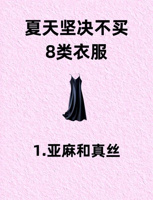 〖Three〗、夏天有8类衣服买了可能会浪费钱,不建议购买。 化纤材质紧身衣:这类衣服透气性差,夏天穿着会让皮肤无法呼吸,大量出汗后易黏在身上,很不舒服,还可能引发皮肤问题。 厚重牛仔外套:夏天天气炎热,厚重牛仔外套穿起来闷热难耐,实用性极低,基本没机会穿。