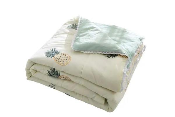 蚕丝:蚕丝是比较大众的空调被面料,这种被子的里面的填充物是至少有80%的天然蚕丝组成的,因此它盖在身上会非常凉爽舒适,非常适合炎炎夏日。蚕丝被有固温的作用,能保证我们的身体一直都是处于一个温暖舒适的状态,同时又不会感到太热。