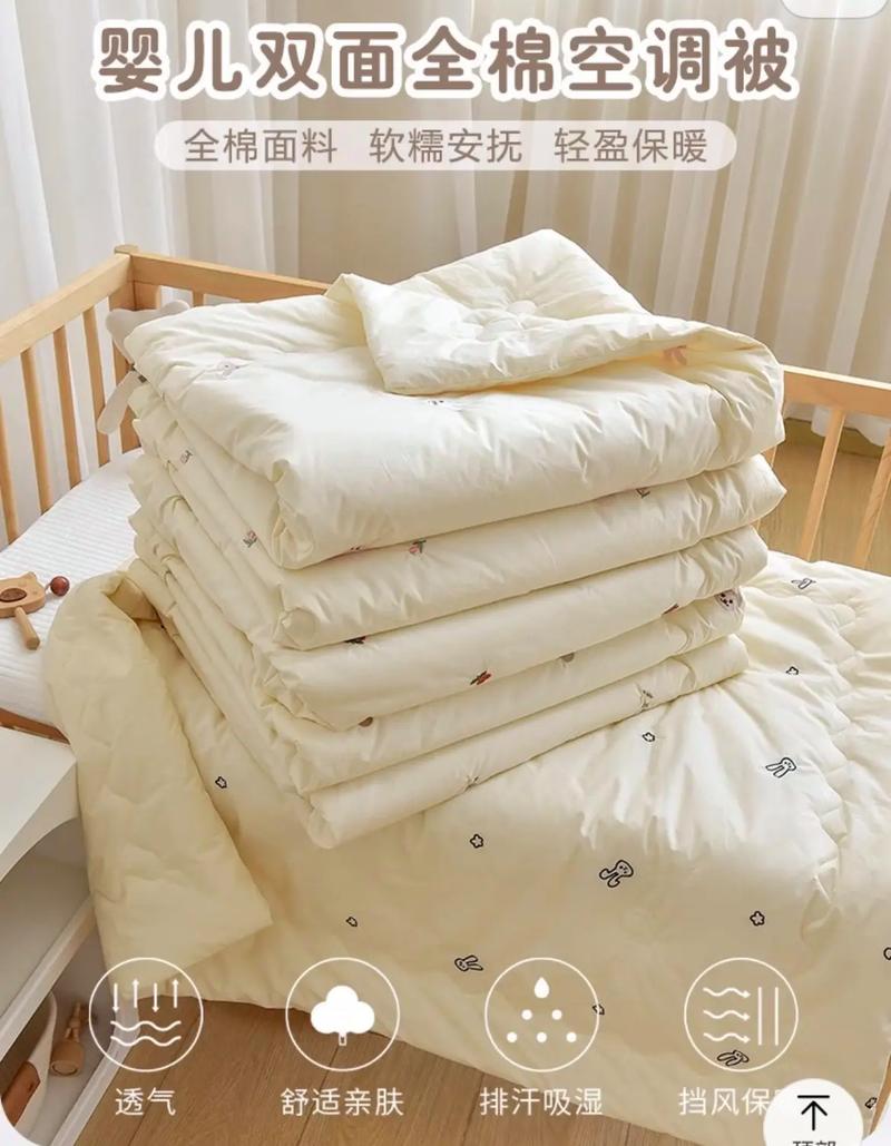 〖Four〗、蚕丝空调被:采用蚕丝制成的空调被具有优异的保暖性能和保健功能,其质地柔软,表面光滑轻盈,给人以舒适的使用体验,不会有压迫感,有助于放松身心,促进良好睡眠。 纯棉空调被:以纯棉为材质的空调被,触感柔软,透气性极佳,吸汗能力出众,提供了极高的舒适度,使用时让人感觉异常舒适。