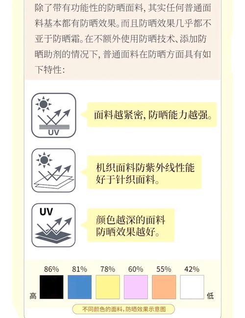 防晒衣upf50比upf40好,但两者差距不明显,选取时还需考虑费用因素。防晒效果:upf50的防晒衣理论上比upf40的防晒效果更好。upf值代表皮肤无防护时与有织物防护时紫外线辐射平均效应的比值,upf值越高,透过织物的紫外线越少,防晒效果越好。费用差异:一般来说,upf50的防晒衣费用会比upf40的更贵一些。