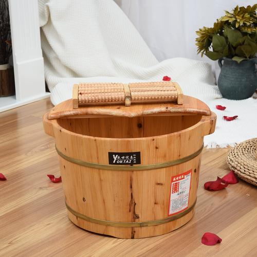 〖Two〗、杉木泡脚桶。杉木泡脚桶耐潮湿环境,材质较轻,防腐能力非常强,杉木泡脚桶轻便,装满水之后还能轻易搬得动。泡脚桶保温效果相当好,木桶里的热水在一个小时内的温度降低只有2『3』度,省水又省电。如果使用和保存方法得当,一只质量上层的木桶可以连续使用十几年。可是说是又经济又实惠。柏木泡脚桶。