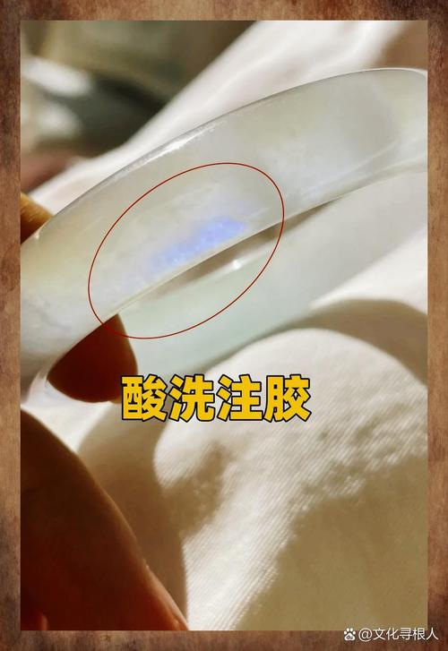 经过注胶处理的翡翠,通常称为B货翡翠,其颜色分布通常不具有层次感,并且不会发出荧光。 注胶翡翠手镯可以获得鉴定证书,但国内对这些证书的认可度可能较低。证书可能由私人机构发出,缺乏权威性。 要判断翡翠是否经过酸洗和注胶,可以通过观察其光泽和气泡来初步判断。