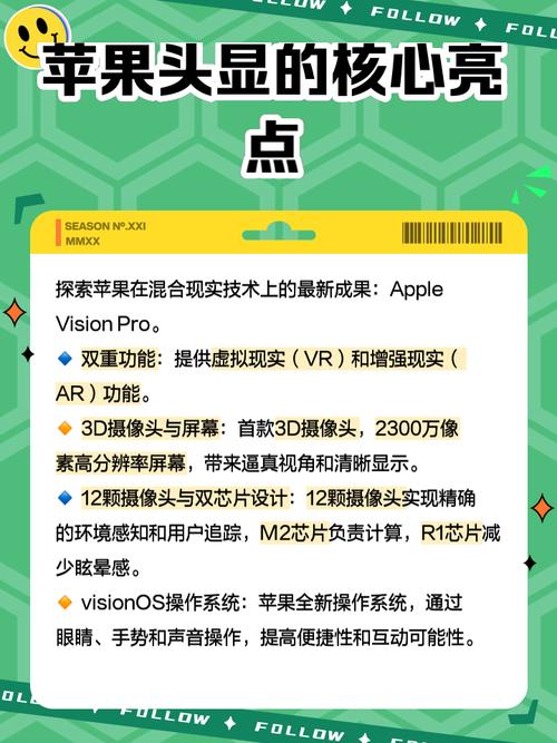 〖Five〗、作为苹果公司首款混合现实头显设备,Apple Vision Pro的发布标志着苹果在智能穿戴设备领域的进一步拓展。随着VR/MR技术的不断发展和普及,Apple Vision Pro有望在未来市场上占据一席之地。