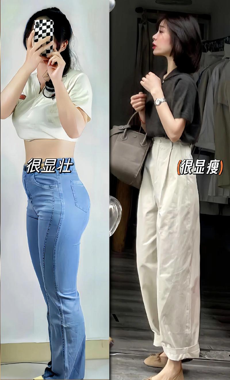 V领上衣:V领可以拉长颈部线条,使脸部看起来更瘦,同时也有助于遮盖肚子部分。深色上衣:深色的上衣具有收缩效果,可以在视觉上使肚子看起来更小。选取合身的裤子:修身裤或直筒裤:这类裤子可以紧贴身体,避免宽松裤子在肚子部位形成赘肉堆积,从而显得更瘦。