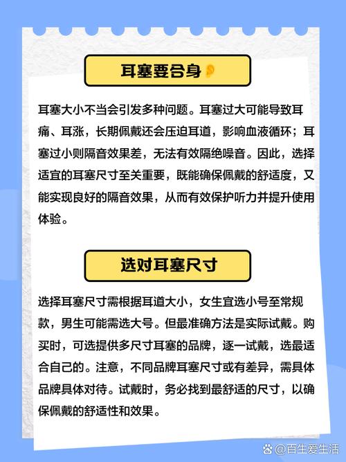 耳塞的大小是否合适,可以通过佩戴的舒适度和声音效果来判断。当你戴上耳塞后,如果感觉不适,如胀痛或容易掉落,那可能是耳塞的大小不合适。耳塞太大,会对耳道造成压迫,长时间佩戴可能会感到不适;耳塞太小,则可能无法紧密贴合耳道,容易掉落,且隔音效果也会大打折扣。