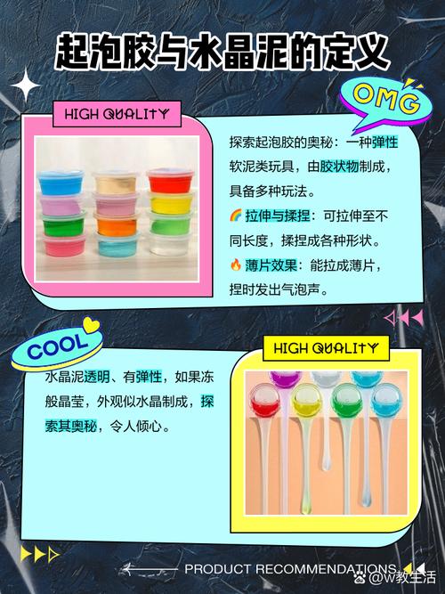 水晶泥和起泡胶是两种不同的材料。水晶泥是一种无毒、无味、无害的玩具材料,通常用于手工制作、艺术创作等。它主要由聚合物、水和添加剂等组成,经过搅拌后可以制成不同颜色和形状的软黏土,有较好的延展性和可塑性。