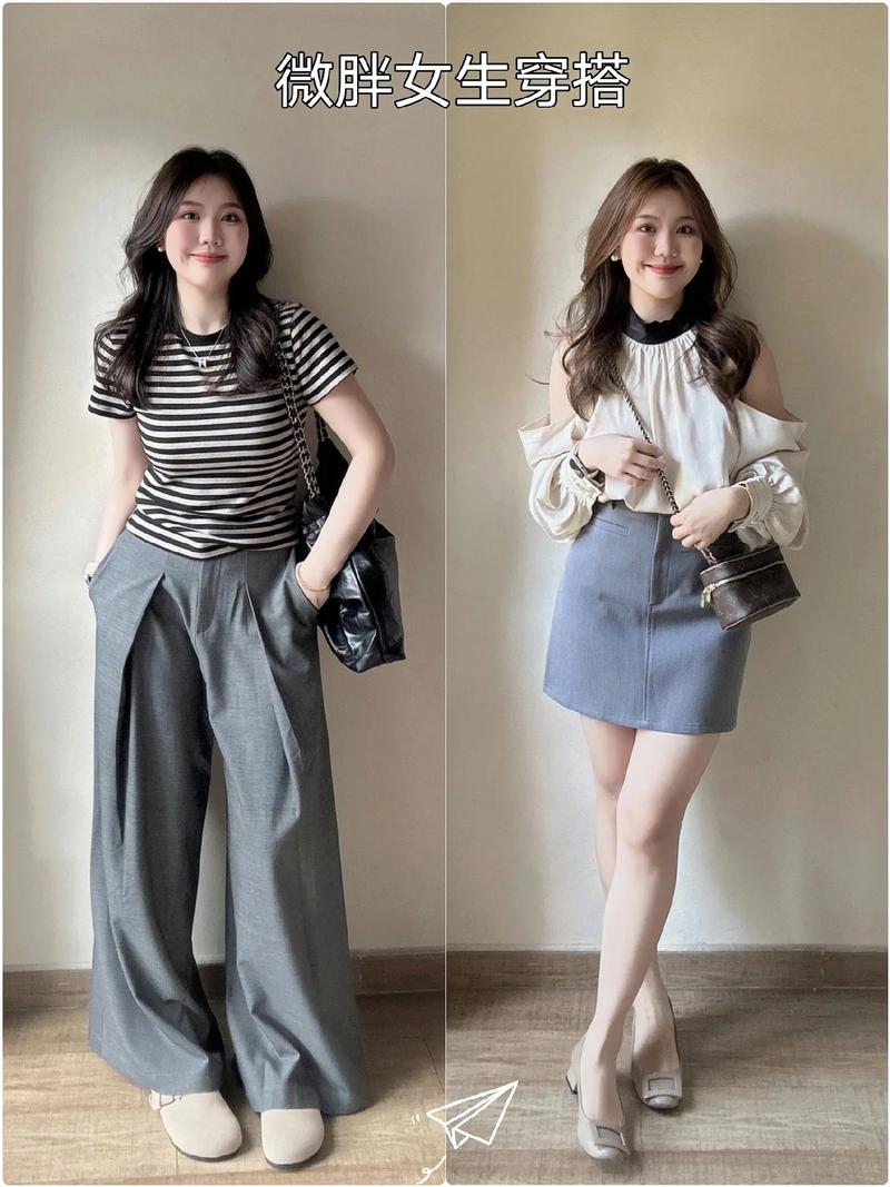 〖One〗、雾霾蓝套装裙:时尚又清新,落肩设计的上衣搭配直筒裙,能够修饰肩部和腰部线条,整体造型简约大方,搭配白色帆布鞋,在视觉上有显瘦的效果。 黑色高腰运动系套装:运动系套装舒适又时尚,简约设计的 T 恤搭配高腰休闲短裤,充满街头感。微胖女人穿着不仅活动方便,还能展现出活力与自信。真正的时尚感染力来自从容姿态,微胖身材穿出自信比“显瘦”更重要。