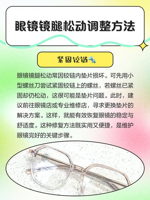如果太阳镜的眼镜腿松了,可以采取以下几种方法来解决:使用指甲油:方法:如果没有螺丝刀,可以将指甲油涂在镜腿与镜框的连接处。指甲油干燥后会起到一定的固定作用,可以暂时解决松动问题。紧螺丝:适用于:金属框镜镜腿松了的情况。