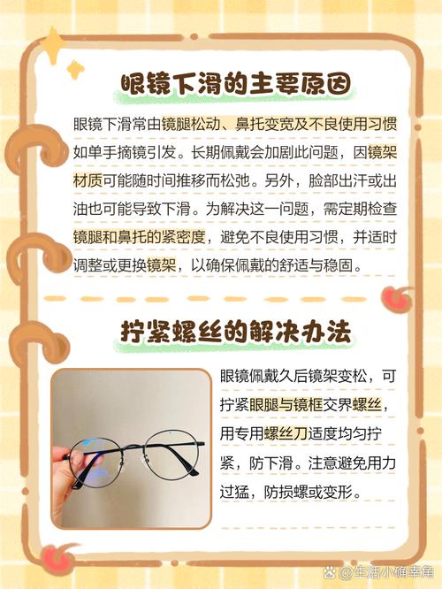 〖One〗、太阳镜戴不住老掉,可以去眼镜店里固定一下镜框。带不稳的原因通常是两条镜腿的小螺丝松动造成的。为了预防和改善这一问题,可以采取以下措施:固定镜框:到专业的眼镜店,请店员检查并固定镜框上的小螺丝,确保镜腿稳固。正确的摘戴方式:使用双手操作,拿住镜腿沿着脸颊平行方向摘戴,避免单手用力不均导致镜框变形。