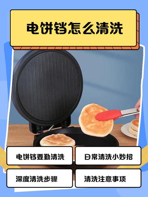 〖Three〗、洗洁精清洗:用湿毛巾蘸取少量洗洁精,对电饼铛进行细致清洗。注意要全面擦拭,确保无遗漏。清水冲洗与擦干:用清水冲洗干净后,用干毛巾将电饼铛擦拭干净,确保无洗洁精残留。碱面清洗:为了更彻底地清洁,可以加入少量热水和碱面,用布打圈清洗电饼铛内部。清洗完毕后,再用清水冲洗干净并擦干。