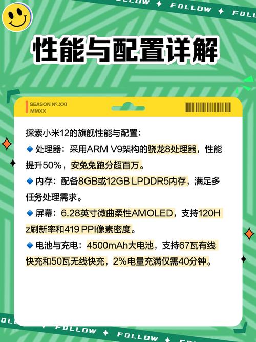 屏幕尺寸:小米12和小米12s都配备了28英寸的屏幕,这一尺寸在当前的智能手机市场中属于中等偏小,适合喜欢单手操作或者追求便携性的用户。屏幕类型:两款手机都采用了AMOLED屏幕类型,这种屏幕具有色彩鲜艳、对比度高、视角广等优点,能够为用户带来出色的视觉体验。