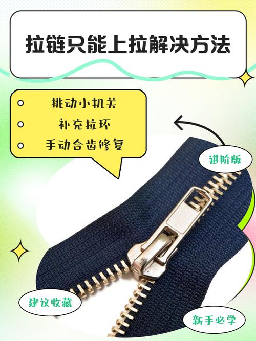 当拉链只能往上拉不能下拉时,可以尝试以下几种方法来解决:使用润滑剂或油:方法:滴一些润滑剂在拉链的轨道和滑块上。原理:润滑剂可以减少摩擦,帮助拉链更顺畅地滑动。清理杂物和污垢:方法:使用细钳子或牙签轻轻地清理拉链轨道中的杂物和污垢。