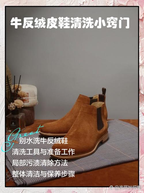 清洁绒面牛皮鞋时,首先使用刷子去除鞋面上的灰尘。 然后用喷雾将鞋面轻微喷湿,避免水分过多。 下面,涂抹专业的绒面清洁剂,等待2分钟。 使用毛巾或绒布擦拭鞋面,清除污渍。 之后用干毛巾进一步擦拭,确保鞋面干燥。 最后,顺着绒面的方向用刷子梳理,以保持绒毛的顺直。