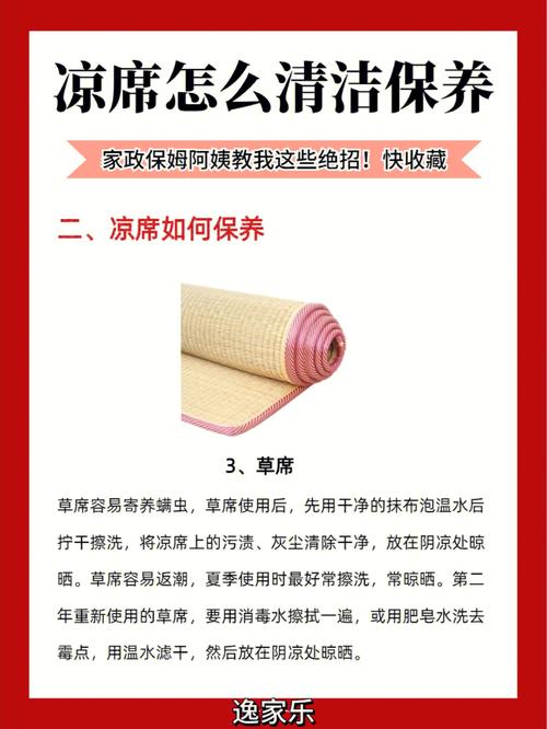 先把竹凉席上的汗渍用温水毛巾多檫几遍。再用3『5』%的淡盐水把凉席的正反面多檫几遍,既可杀死一些虫菌,又可使席子保持一定水分,可防干裂。比较好在天气干热时阴干,切忌长时曝晒,防止篾丝变脆易断。收藏时,比较好折叠装入袋内。
