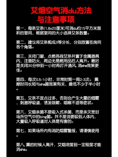 若要进行艾草熏屋子,首先确保门窗紧闭,准备好500克干艾叶。点燃艾叶后,让其在房间内熏1小时,待烟味弥漫后,再开窗通风。重要的是,应选取成熟的艾草,避免药力不足,熏烧时间要长,同时确保人离开房间。艾草的熏香不仅可以去除室内的异味,还帮助新居主人更快适应新环境。