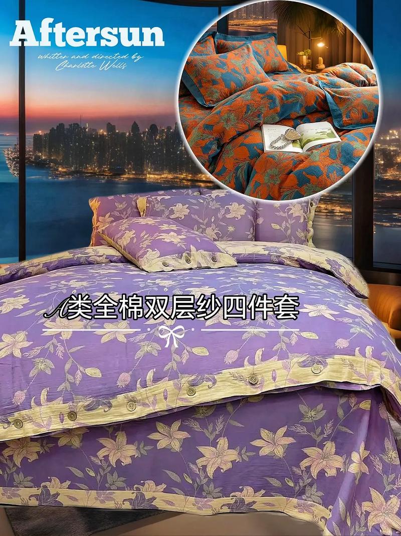 〖Four〗、市面上一些优质的双层纱产品采用40支纱线编织,这种工艺使得面料更耐用,不易起球。40支纱线意味着纱线细密,适合夏季使用,不仅凉爽,而且透气性极佳。对于喜欢清爽感觉的人来说,选取40支双层纱四件套无疑是个明智之举。