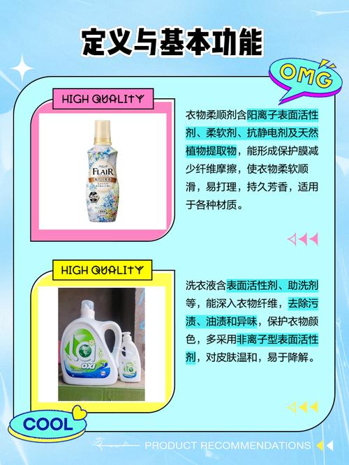 〖Three〗、柔顺剂和洗衣液的区别如下: 成分差异 柔顺剂:主要成分为抗静电剂、柔软剂、香料等,专注于衣物的柔软和静电去除。 洗衣液:主要成分为表面活性剂、香料等,旨在清洁衣物,去除污渍和油脂。 功能不同 柔顺剂:主要功能是提升衣物的手感和穿着舒适度,减少静电。